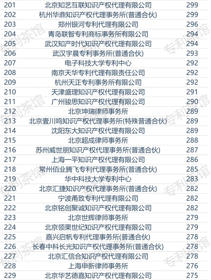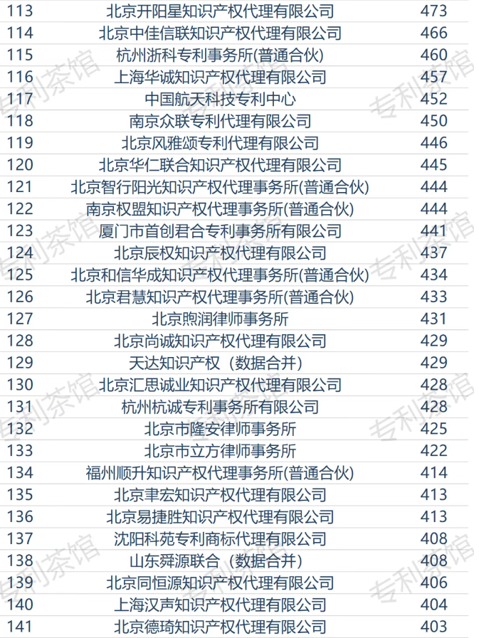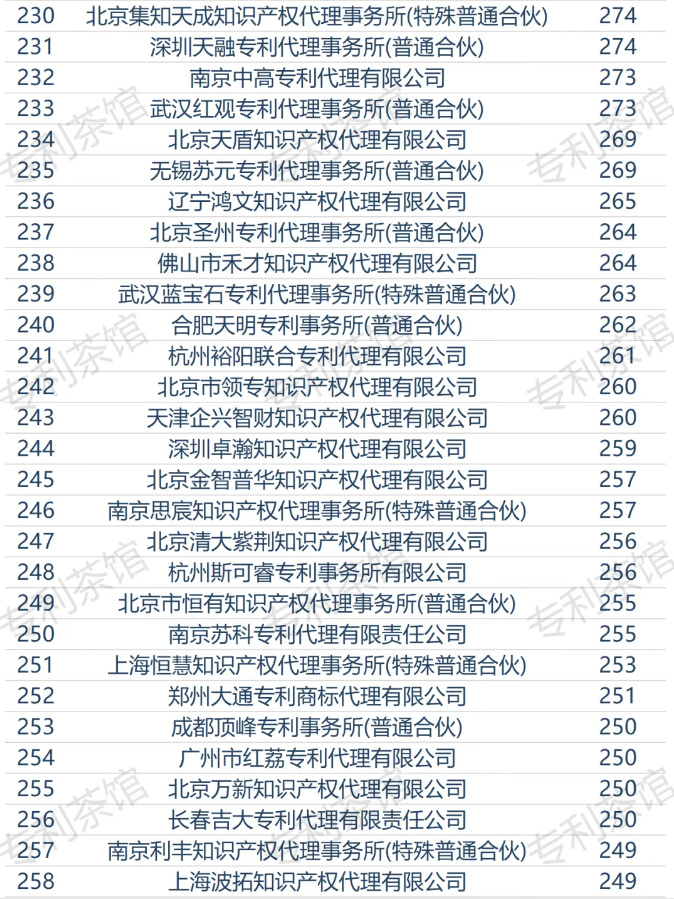2025上半年代理所发明专利授权量前三为:北京集佳6048件、广州三环5424件、北京品源4701件。TOP300数据如下: